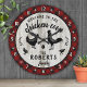 Rustic Farmhouse Chicken Coop Wood Plaid Custom Round Clock
