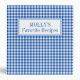 This cute rustic farmhouse inspired recipe binder features a classic blue and white gingham checked plaid background and can be personalized with your choice of name and special text. Matching recipe page inserts are available.