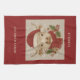 This festive kitchen towel features a Highland cow in embroidery style, wearing a Santa hat and scarf on a linen-inspired background. Warm brown tones and rustic details add farmhouse charm, making it a cozy holiday accent. AI-assisted design ensures handcrafted texture.