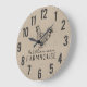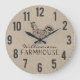 Rustic Farmhouse Rooster Burlap Family Name Large Clock