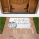 Get a vintage fall look for your entryway! This rustic farmhouse style gray and white doormat has the words "Hello There, Pumpkin" in thin sweeping script.