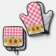 Rustic Farmhouse Sunflowers Pink Gingham Oven Mitt & Pot Holder Set