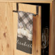 Thanksgiving dinner kitchen towel with a rustic and elegant design. The background is a warm brown plaid, decorated with watercolor-style white pumpkins, autumn flowers, dried leaves, and soft neutral florals. You can personalize it with your name. The overall mood is cozy, farmhouse-inspired, and perfect for fall gatherings. Perfect gift for anyone who is cooking and baking for Thanksgiving : mom, dad, grandma, grandpa, etc...