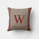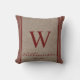 Rustic Farmhouse Ticking Stripe Burlap Monogram Throw Pillow