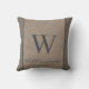 Rustic Farmhouse Ticking Stripe Burlap Monogram Throw Pillow
