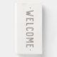Custom farmhouse wall art with WELCOME text on a weathered wood background. Customize It with your own text and images to create a unique one of a kind sign.