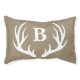 Tie in your farmhouse rustic home decor with your pet's! This rustic country white deer antlers silhouette and pet's initial letter pet bed is the perfect addition. The background is a faux burlap print.