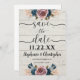 Tell your guests to Save the Date with these formal but elegantly rustic wood watercolor floral flowers in rusty blue and light pink accents with a wood panel background. Perfect for a barn/farmhouse wedding venue.