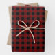 Trendy Christmas wrapping paper with red plaid, kraft paper, deers, and pine trees.