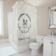 Rustic Farmhouse Wreath Monogram Shower Curtain- Add a touch of farmhouse to your home with our shower curtain, featuring your monogram, year your home was established surrounded by a country wreath. Custom shower curtain also features your family name. A unique shower curtain, customized by you!