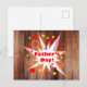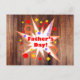 Cheerful Father's Day design will make a big splash with colorful circles, smiley faces and "Happy Father's Day" text on a rustic, wood look background.