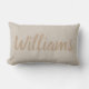 Rustic family name throw pillow for your home or to give out as a wonderful personalized gift. This classic farmhouse personalized pillow features a neutral light tan and cream color palette and a printed burlap style texture. It's personalized with a large cursive script family name print across the center of the pillow. Customize it by replacing the sample name Williams with your own surname or any custom name or word.