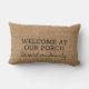 Rustic faux burlap welcome to our porch family name Lumbar Pillow.
