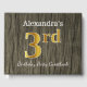 This guest book design features the ordinal number "3rd" with a faux gold-like appearance. It also features a custom name, and a rustic faux wood appearance background. It could be used at a party for somebody celebrating their third birthday. [~Z0000053]