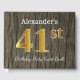 This guest book design features the ordinal number "41st" with a faux/imitation gold-like appearance. It also features a personalized name, and a rustic faux wood look background. It could be used at a party for somebody celebrating their forty first birthday. [~Z0000053]