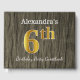 This guest book design features the ordinal number "6th" with a faux gold-like appearance. It also features a personalized name, and a rustic faux wood appearance background. It could be used at a party for somebody celebrating their sixth birthday. [~Z0000053]