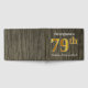 This guest book design features the ordinal number "79th" with a faux/imitation gold-like appearance. It also features a customized name, and a rustic faux wood appearance background. It could be used at a party for somebody celebrating their seventy ninth birthday. [~Z0000053]