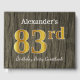 This guest book design features the ordinal number "83rd" with a faux/imitation gold-like appearance. It also features a custom name, and a rustic faux wood look background. It could be used at a party for somebody celebrating their eighty third birthday. [~Z0000053]