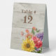 Rustic Faux Wood and Flowers Wedding Table Tent