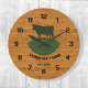 Personalize this rustic wood look wall clock design with a farming motif with your own text. Acrylic wall clock is printed with a dairy cow silhouette on a hill and a faux wood background. Available in your choice or round or square faces.
