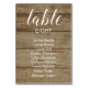 Guide your guests to their proper table with this charming faux wood rustic seating chart card. Personalize the table number and the guest's name.