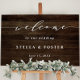 This faux wood welcome sign is perfect for a rustic wedding or similar events.