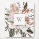 A lovely nature inspired design with a rustic bouquet of mixed floral elements with pretty wildflowers in neutral shades of beige, peach, pink, off-white and terracotta with moss-green leaves and stems. This unique design has a square frame in the center surrounded by a faux gold foil border. The look is casual sophistication with elegant charm. Personalize with your monogram initial.