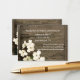 Country chic wedding invitation enclosure card, with a graphic enhanced photo of a rustic wooden fence. Lovely white dogwood tree blooms, decorate the bottom left corner of the card. The white text is fully customizable to suit your wedding needs.