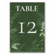 Rustic Fern Green Foliage Emerald Wedding Table Number