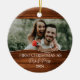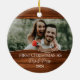 Celebrate your first Christmas as a married couple with this beautifully rustic ornament! Featuring a charming wood-effect background, this design allows you to upload your favorite wedding photo and personalize it with your names and the year. The text "First Christmas as Mr. & Mrs." is elegantly displayed, making this a perfect keepsake for newlyweds