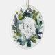 Rustic First Christmas Engaged Wreath Photo Ceramic Ornament