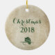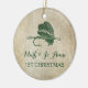 Our Rustic Fishing Lure Christmas Ornament makes a fantastic gift! whether it is your first Christmas as husband and wife, or you love fishing, all text is customizable and editable. rustic tan background with hunter green lure.