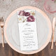 An ultra-feminine menu design that captures the essence of rustic elegance with its abundant display of peonies and roses in harmonizing deep burgundy, plum, dusty pink, and soft ivory white. The feminine botanical elements are combined as though they are in a sumptuous garden bouquet and make entertaining your guests so enjoyable! Modern script handwritten text spells out "Menu" in sophisticated style. Personalize the menu text with your selected menu items. If you need to add or remove lines of text or move the text around on the menu card, select ""edit using design tool" at the bottom of the personalize template. This will open the full editor and allow you to make additional edits.