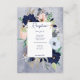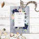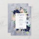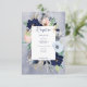 This wedding reception card design features a wreath of tan, navy, peach blush, tan, and white florals on a navy blue watercolor splash background. It also features nautical elements like rope, starfish and an anchor. Perfect for the destination, beach, or water side wedding. Created by Simply Farmhouse Press, it's part of the Rustic Floral Beach Nautical Wedding Suite.