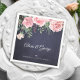 Classic chic simple calligraphy elegant wedding personalized paper napkins featuring a blush pink watercolor roses bouquet against a dark navy blue chalkboard background. ++++++++++ Insert bride and groom names and your text!