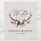 Rustic foliage with couples name wedding party design. With beautiful watercolor foliage, stag antlers and bold font. This modern design is sure to set the style for your upcoming party.