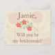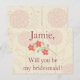 Using a rustic beige and red background, this bridesmaid proposal has her name written in lovely red font with "Will you be my bridesmaid?" underneath. Order yours today!