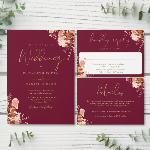 Rustic Burgundy And Gold Floral Fall Wedding SuiteDesigned by Thisisnotme Designs