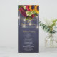 Elegant country rustic wedding ceremony program template featuring a beautiful yellow sunflowers and red burgundy roses bouquet, strings of white lights and a faux gold chic calligraphy script on a dark midnight navy blue chalkboard background.++++++++++++ Personalize it with your details! To make more changes, select CUSTOMIZE FURTHER option. +++++++++ Suitable for winter or autumn fall | garden vintage traditional rustic country | summer night | backyard outdoor weddings. +++++++++++ If you need help in changing the design, please contact me!