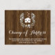 These adorable postcards are perfect to announce to your friends & family that you have moved! They feature a country charm design with a rustic wooden background (print effect only). On top of the background is a floral wreath with a house inside. The house has hearts coming from the chimney. The text reads "Change of Address" but you can customize this to be anything (such as "I've Moved"). Under the title is room for you to add a message.