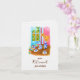 This Rustic Floral Coffee Setting Happy Retirement Card features an original watercolor painting that beautifully captures the charm of a cozy countryside scene. At the center is a vibrant Talavera coffee setting resting on a rustic wooden table, surrounded by warm yellow-orange flowers in a floral base. The design radiates a welcoming atmosphere with a rustic pink wall in the background, and a wooden blue window opening to a lush garden, where hints of green foliage peek through. A colorful Mexican sarape draped over one side of the table adds a splash of traditional vibrancy. The design is set against a surface that resembles handmade cotton paper, offering a soft, artisanal feel (not real handmade cotton paper). Perfect for celebrating retirement with warmth, color, and heartfelt congratulations.