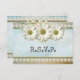 An elegant RSVP card featuring white daisies on a painted background with rustic wood and lace.