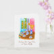 Rustic Floral Cozy Coffee Setting Feel Better Card. This Feeling Better greeting card features a cozy and colorful design to uplift spirits. The illustration showcases a vibrant Talavera coffee setting on a rustic wooden table, surrounded by warm yellow-orange flowers in a floral base. The backdrop features a rustic pink wall and a wooden blue window that opens to a lush garden with green foliage peeking through. A colorful Mexican sarape drapes over one side of the table, adding a lively touch of tradition. The warm, inviting scene evokes comfort, coziness, and a sense of healing—perfect for sending heartfelt wishes for a speedy recovery and brighter days ahead.
