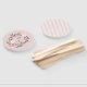 This wedding program fan features a rustic wildflower crest with customizable monogram and handwriting style font on the front and a striped background with date (or other text) on the back, to give the wedding guests added comfort and a little keepsake.