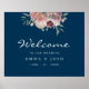 Rustic, Floral, Navy, Wedding Welcome Sign