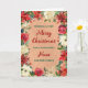 Merry Christmas for niece and her family card with rustic watercolor flowers and vintage brown paper pattern.