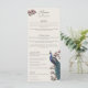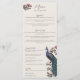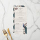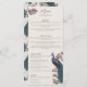 This elegant, ivory complete wedding menu features hand-drawn "Chinoiserie-style" illustrations of a blue and teal peacock bird surrounded by Magnolia greenery, showcasing vibrant cream and blush pink magnolia flowers, all against an elegant ivory background. The back features an elegant floral and bird pattern with coordinating illustrations. All text is editable. Customize with your wedding details, including bride and groom names, appetizer, main course, dessert table and drinks.