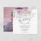 This is a gorgeous rustic watercolor design featuring eucalyptus, coordinating foliage in sage green and blush pink roses. On the reverse you have the option to add your favourite couples photo which has a sophisticated plum translucent overlay. This is an original design and easy to personalize with your own unique details.