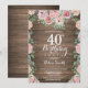 Rustic Floral Pink Peonies 40th Birthday Invitation