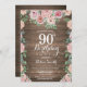 Rustic Floral Pink Peonies 90th Birthday Invitation